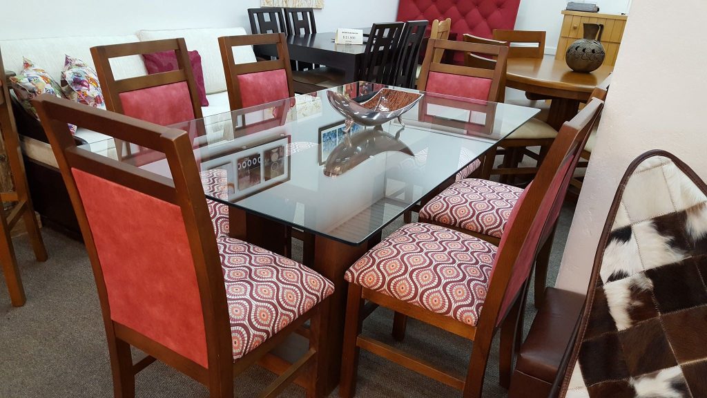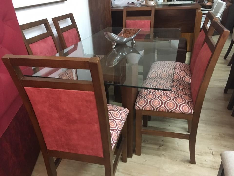 Juegos de comedor con base de madera y tapa de vidrio, los hacemos a medida , con el diseño de base que mejor se adapte a su comedor , al igual que las sillas, tapizado , tono de lustre es todo a eleccion .